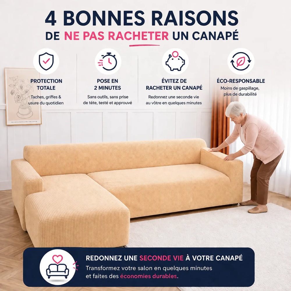 Une installation rapide, un effet immédiat : votre canapé d'angle retrouve instantanément une allure soignée, actuelle et une protection efficace contre les taches, les poils d’animaux et l’usure du quotidien.