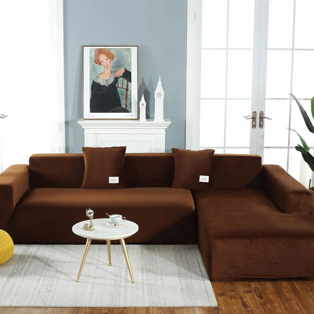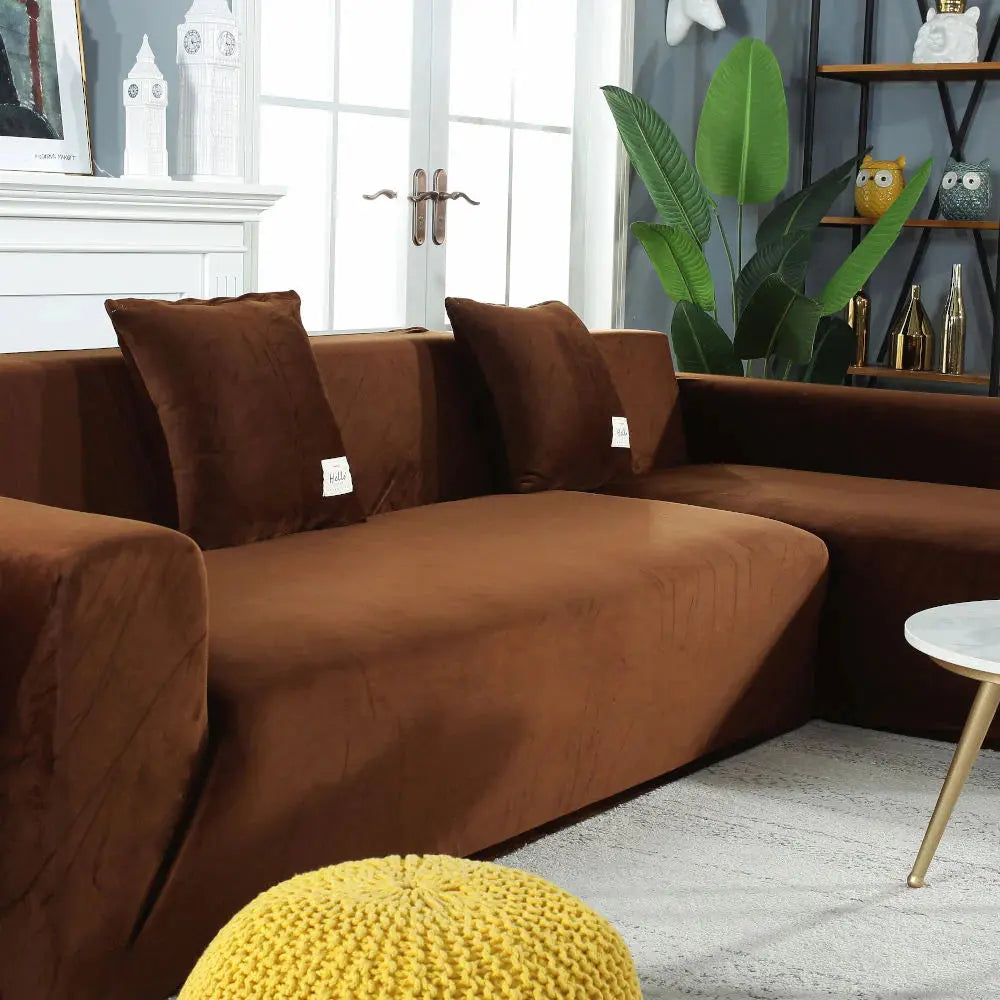 Housse de Canapé d'Angle en Velours Marron : Élégance et Confort pour Votre Salon