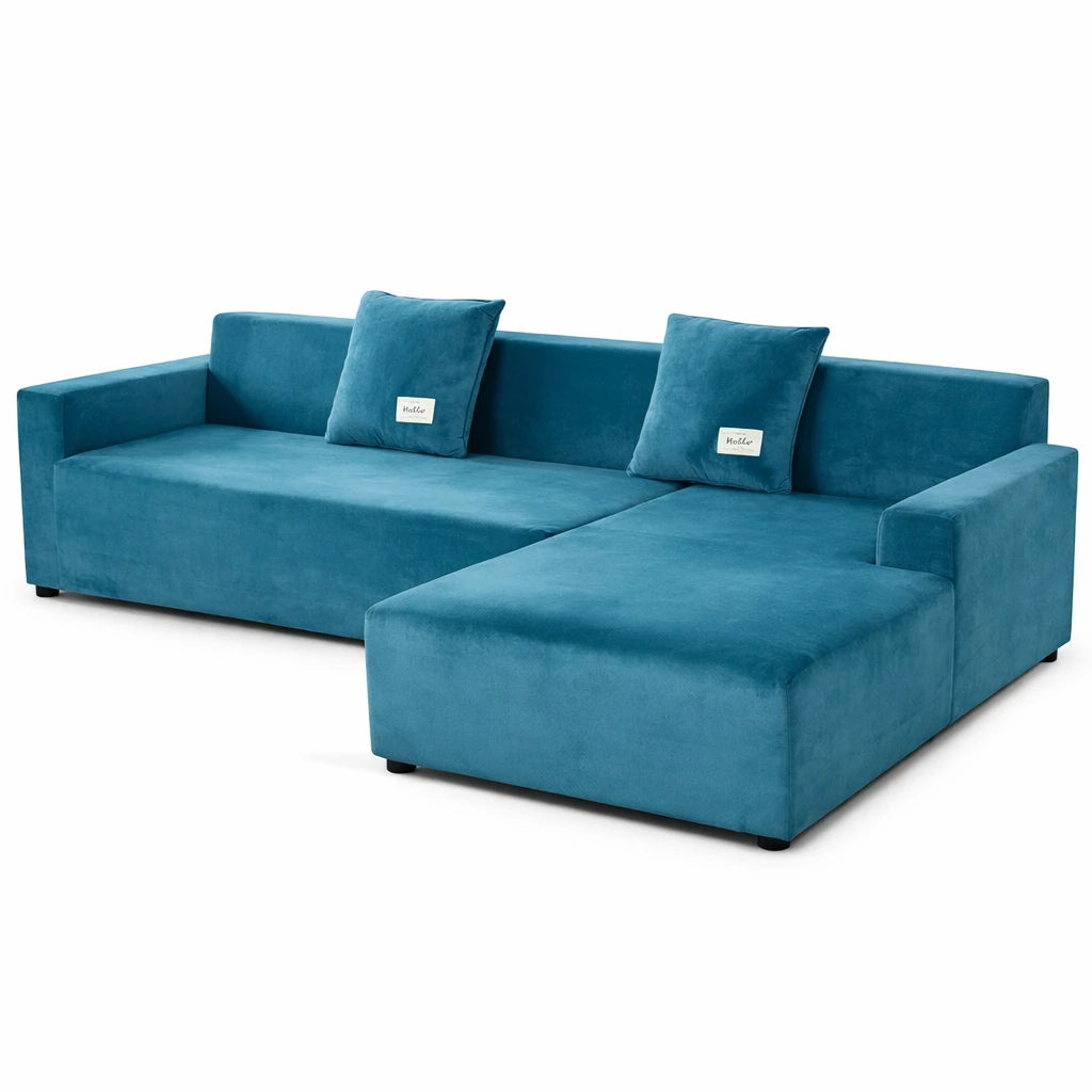 Velours Lac Bleu - Housse de Canapé d’Angle Extensible