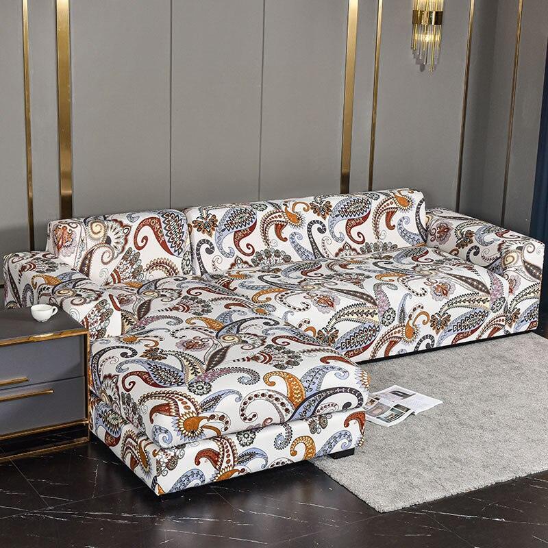 🌿 Housse de Canapé d’Angle – Motif Pelag