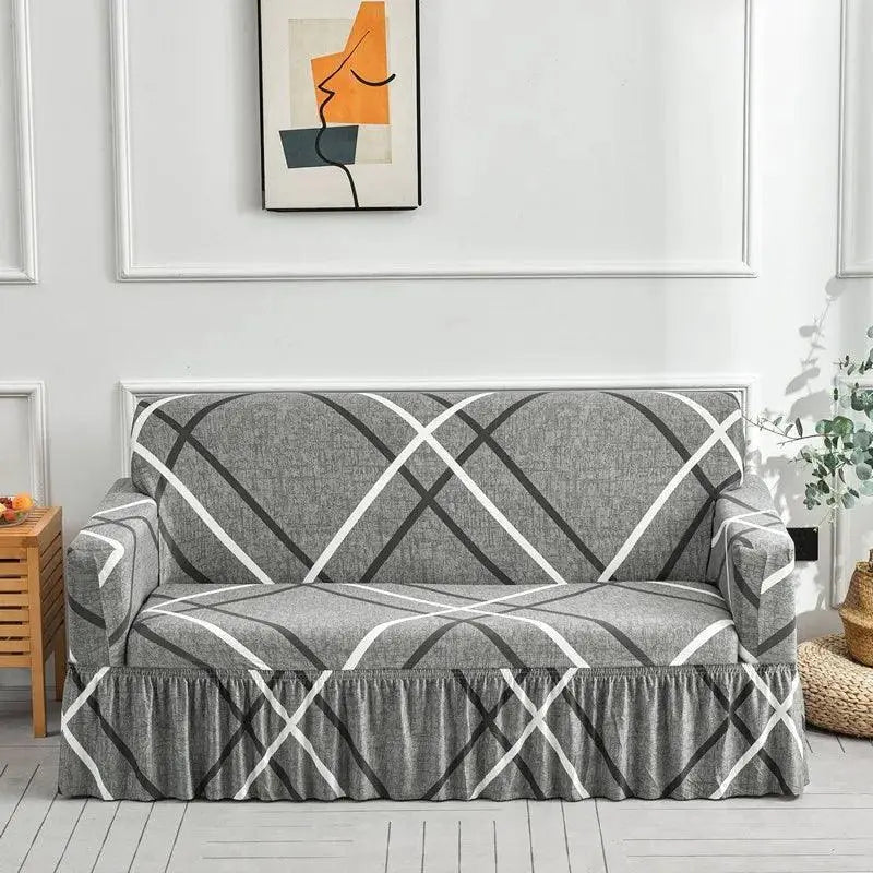 La Housse de Canapé - Jupe Corvi combine une finition jupe élégante avec un tissu extensible et résistant, offrant une protection optimale tout en sublimant votre canapé.