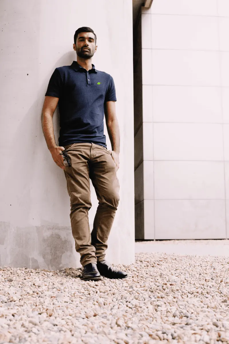 Polo pour homme avec un Design Français avec une coupe moderne en coton 100% biologique, cultivé de manière responsable avec des méthodes naturelles, sans utilisation de pesticides et avec un impact réduit sur l'environnement.